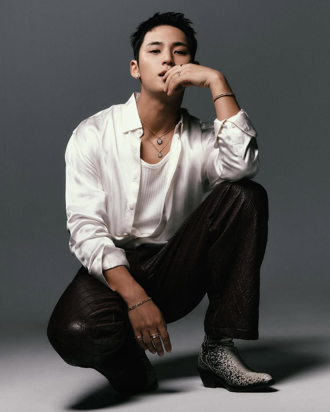 “I really wanted to go to Fashion Weeks from when I was very little, in the days when it wasn’t really common for musical artists to be at fashion shows.”Towards the end of our conversation, the adorable K-pop idol Mingyu mentions a forthcoming trip to London. Mingyu’s full name is Kim Mingyu. He was born in Anyang, the 20th largest city in South Korea. For the last nine years, he has been one crucial cornerstone of the exciting, multi-platform, 13-strong Korean boy band phenomenon, Seventeen. This will be his first trip to Britain, a symbolic journey out of his artist’s heartland into new pastures.For brevity’s sake, all members of Seventeen (also: S.Coups, Jeonghan, Joshua, Jun, Hoshi, Wonwoo, Woozi, DK, THE8, Seungkwan, Vernon, Dino) are known by curtailed versions of their full names. Like a video game or plotlines on an extravagant HBO series, Seventeen is divided into three identifiable subunits. Theirs constitute Singing, Performance, and Rapping. Mingyu is part of the rap troupe.Mingyu’s year-zero pop awakening was Justin Bieber’s evergreen teen classic, ‘Baby’, a song specifically titled to unleash maximum worldwide appeal. Like many Seventeen songs, it features a breakout middle-eight rap, Ludacris at his performative cutesiest. When he mentions ‘Baby’, Mingyu briefly breaks into singing its chorus, providing a short private audience his fans would simply die for and boldly bridging the geographical culture gap, East to West. He is charm itself.One week ago, Mingyu finished the official global promotions for Seventeen's first greatest hits album, 17 is Right Here, is a useful interloper’s guide to how K-pop became the most effective pop machine on the planet during their lifespan, a noisy youthful clapback to Western pop entering its dotage. On 20 November 2025, it will be 70 years since Elvis scored his first hit single, ‘That’s Alright’.All the Seventeen fan favorites are included on 17 is Right Here, full of lyrics nakedly, if chastely, aping some of the bodily urges of their fanbase. Last year, Seventeen sold 11 million copies of their EP FML and fourth full album, Face The Sun, comfortably breaking sales records at home. The latter’s signature song, ‘Hot’, is a propulsive play on Snoop Dogg’s ‘Drop It Like It’s Hot’, sung in Korean and English and fizzing like a Catherine wheel. The engine room works of K-pop magic have a knack for sometimes sounding like an *Nsync record beamed in backwards from another planet.While the Western hit factory lopes towards its eight decade, K-pop is still full of enough unbridled hormonal energy to make Mingyu an elder statesman of the genre at 27. It’s fresh enough to confide Radio One playlisters. K-pop is a cacophonous musical Esperanto parents don’t understand, enveloping its exclusively young audience off to a private world, while incubating their passage to maturity, a secret only they share. Seventeen might be displacement fantasy boyfriends for their fans, but they work as surrogate big brothers, too, wrapping an arm around innocence. They disrupted the conveyor-belt nature of their industry by helping to write and produce their own material, of which all 13 members are justifiably proud. To find an analogous British counterpart, you have to travel back through half of Western pop’s history. They are the East 17 to BTS’ Take That. Or Blazing Squad without the petty crime inferences.K-pop folklore set up a mathematical riddle for the band at their outset. Thirteen members + three subunits + one whole = Seventeen. Tada! Seventeen is a special pop number anyway, the last blast year before adulthood, the final fling before responsibility kicks in.Today, Mingyu has a cold, apologizing profusely when he arrives on Zoom for being 20 minutes late. He has just seen his doctor but remains blessed with manners only a besotted mother can teach. He is polite to a fault, sporting a Dior logo sweatshirt, frequently running his hand through his hair, a customary Seventeen curtains cut he shares with at least another 12 boys in the band. Mingyu’s star sign is Aries. Fun Smash Hits! Mingyu fact: their vaguely narcotic-sounding mascot, Kim Bong-Bong, was based on a drawing by him.Mingyu is insanely pretty. ‘So, will I see you in London then?’ he asks, after speaking for all of 45 minutes. This assumed camaraderie is part of the K-pop pull. Once you’re in the gang – Seventeen fans, after a brief televised poll, christened themselves Carats – you’re not going anywhere. ‘It’s my first time.’ Mingyu possesses something of an altar boy’s helpful compliance; he instantly invokes paternal instincts. ‘Are you coming to Glastonbury?’ he asks, before chastising himself for letting out one of his forthcoming trade secrets. In June 2024, Seventeen made music history by becoming the festival’s first K-pop booking. ‘That’s a secret,’ he reiterates, putting his forefinger to his lips. I promise not to tell anyone, lost fleetingly in a new nugget of K-pop mythology, an engaging fantasy world to hover around. ‘I am sorry’, he says, breaking into delicate English. ‘But I am so proud of that.’Kim Mingyu was scouted on the streets of Anyang by a talent spotter for the Korean entertainment corporation, at 15. ‘I wasn’t that thoroughly prepared for auditions,’ he says. ‘I think our CEO just liked the way I looked.’ Mingyu had long harbored ambitions of becoming a pop star, without quite figuring out how. ‘When I was little, growing up I learned music off the Billboard chart. I kept a close eye on what songs were on there. And I watched a lot of the subtitled versions of foreign artists’ music videos. That was my dream, to become an artist, like maybe Bruno Mars or Justin Bieber.’Hip-hop was not his thing. ‘As a matter of fact, even though I do rap nowadays, I wasn’t that into rap back then. It’s just that I wanted to become somebody receiving all those cheer