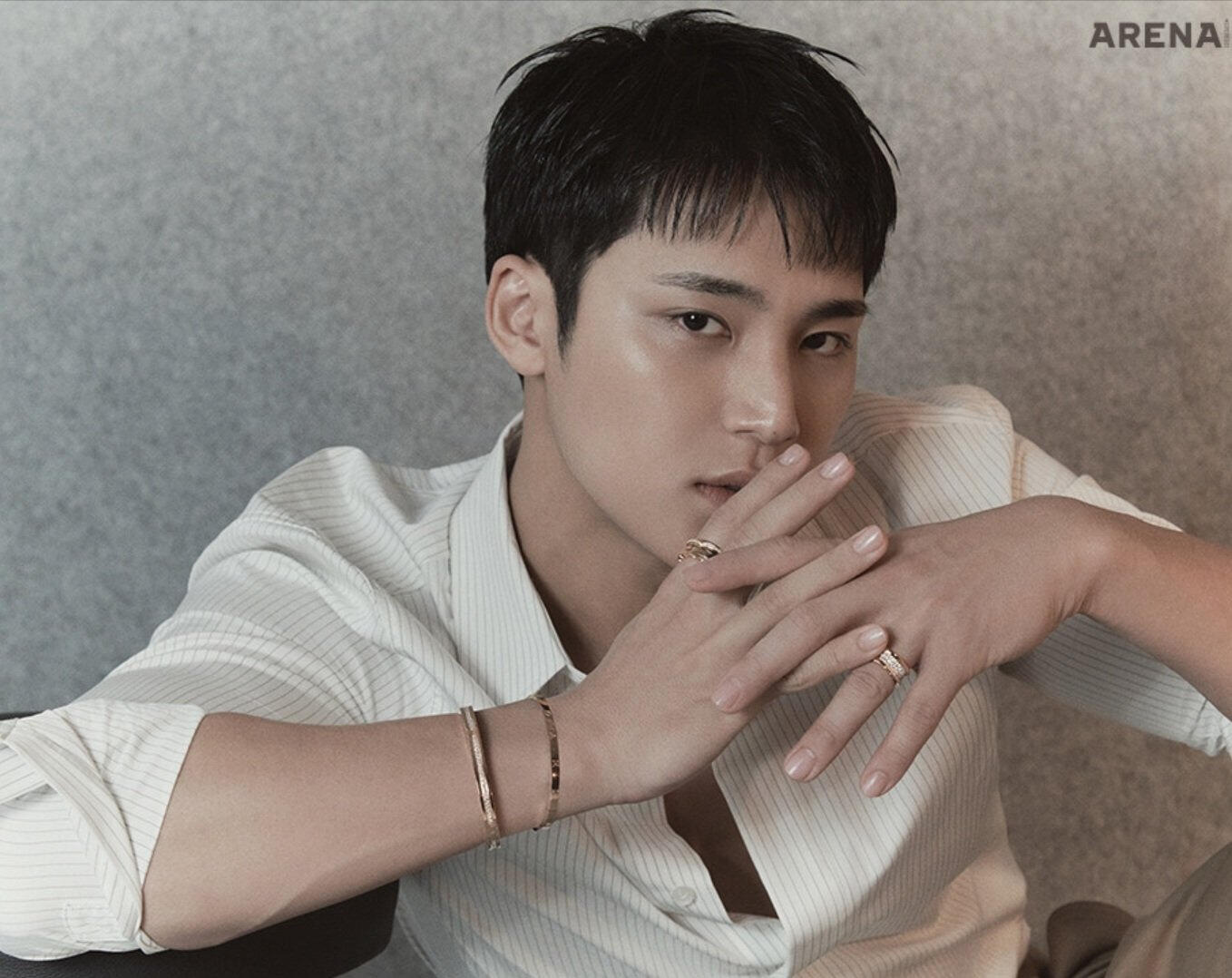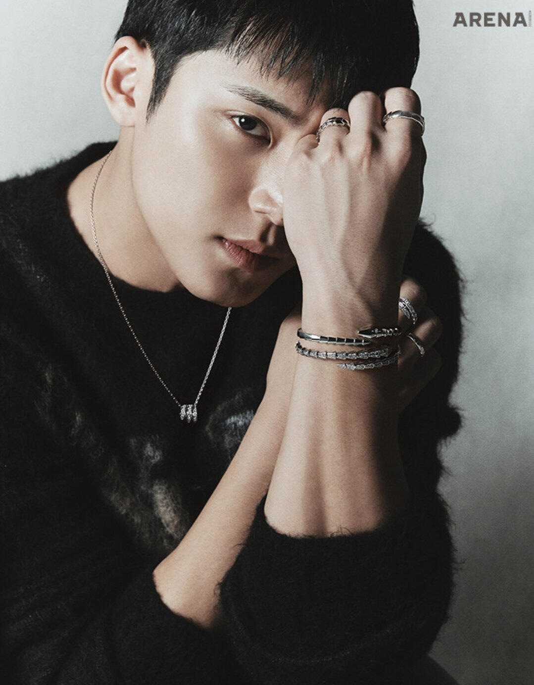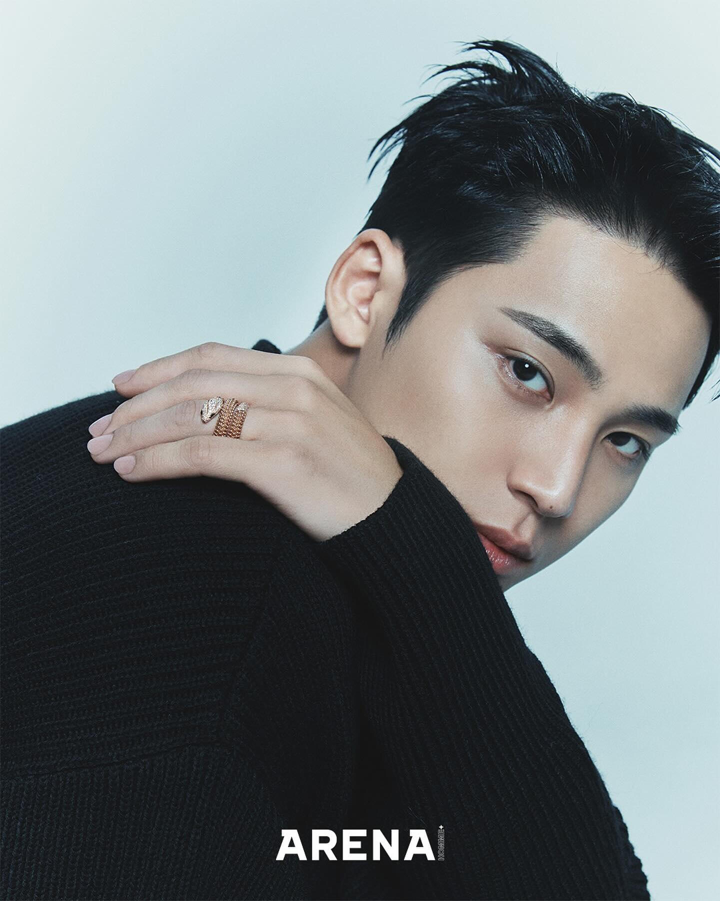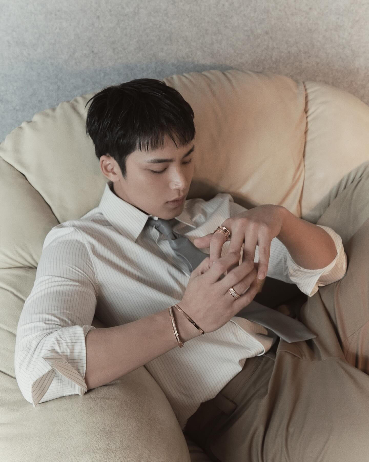 Personally, he is a cool, young man with the most down-to-earth personality I have seen. The dictionary meaning of ‘청년’ (young man) is, “a person who’s in the prime of physical or mental growth or maturity.” MINGYU is exactly that himself. We had the shoot a few days before the Lunar New Year, and for some reason, it felt like a holiday where all of our distant relatives had gathered as we exchanged words of blessing and greetings with each other for the new year. The very giddy atmosphere at the shooting site was a refreshing sight to see. MINGYU played a big role– he treated all the staff with such a gentle attitude as if he was like a baby brother who grew up well after such a long time. And also in the midst of that, he captured all the details directed during the shoot without missing them out. In his serious eyes that focused on tiny suggestions/ideas, I could feel how much he was doing his best at the moment. The close-up shots being captured on the monitor real-time were also very much admirable/impressive. His bright and upright personality was all revealed on his face. He was a young man with such clear eyes. The healthy and bright image of MINGYU was exactly in line with the dispositions of Bulgari B.zero1, which celebrated their 25th anniversary. One ring meeting a complex layering fit one another as if they have found their perfect match. Plus Arena. Truly a perfect combination. (Choi Taekyung)