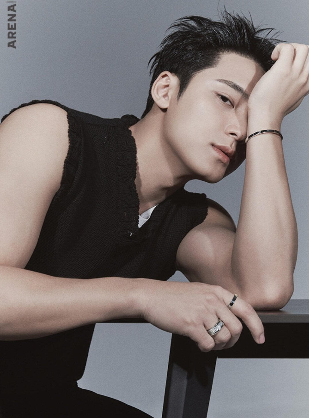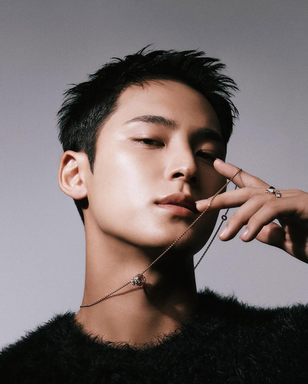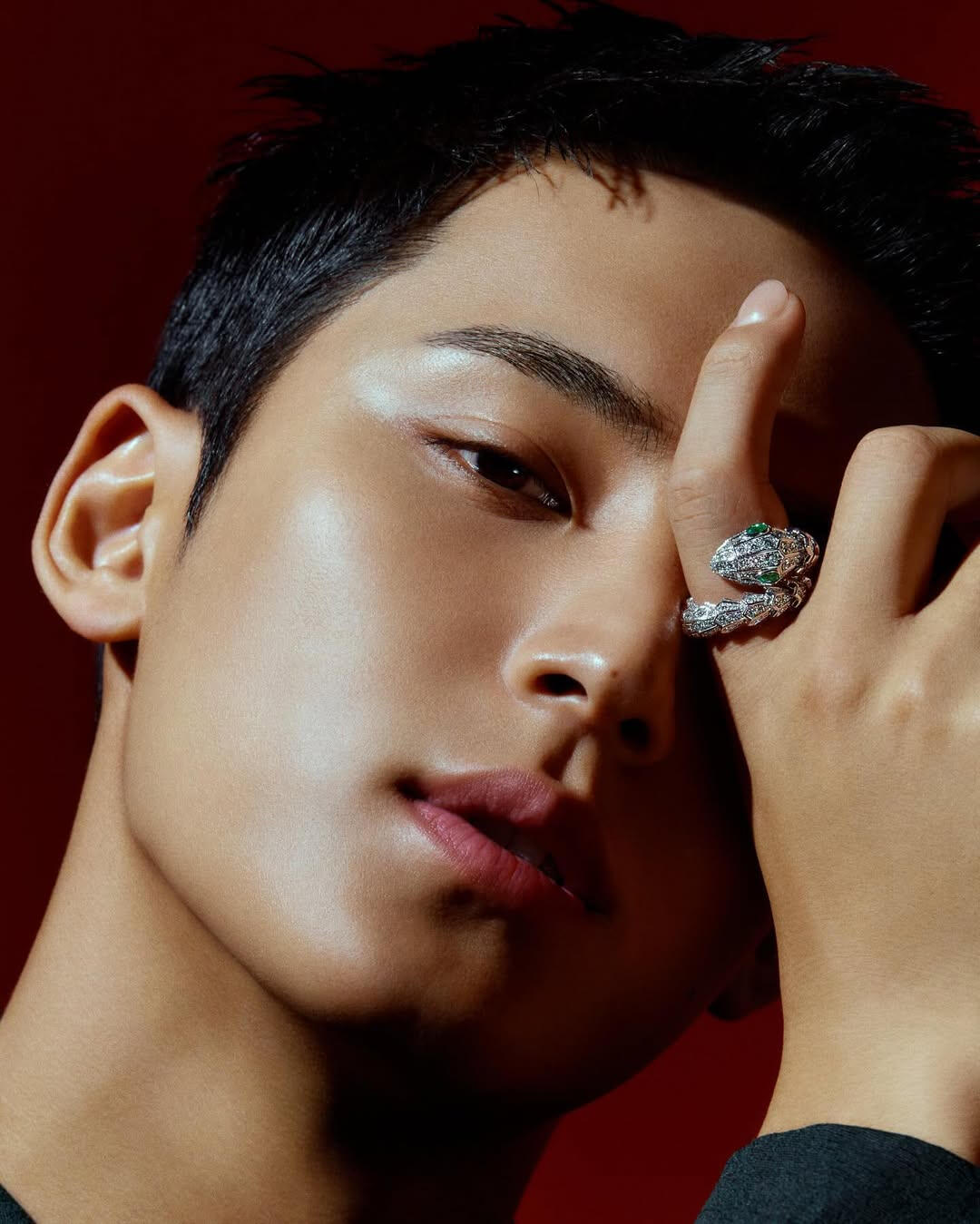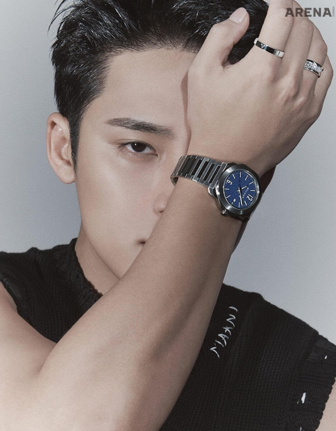 Personally, he is a cool, young man with the most down-to-earth personality I have seen. The dictionary meaning of ‘청년’ (young man) is, “a person who’s in the prime of physical or mental growth or maturity.” MINGYU is exactly that himself. We had the shoot a few days before the Lunar New Year, and for some reason, it felt like a holiday where all of our distant relatives had gathered as we exchanged words of blessing and greetings with each other for the new year. The very giddy atmosphere at the shooting site was a refreshing sight to see. MINGYU played a big role– he treated all the staff with such a gentle attitude as if he was like a baby brother who grew up well after such a long time. And also in the midst of that, he captured all the details directed during the shoot without missing them out. In his serious eyes that focused on tiny suggestions/ideas, I could feel how much he was doing his best at the moment. The close-up shots being captured on the monitor real-time were also very much admirable/impressive. His bright and upright personality was all revealed on his face. He was a young man with such clear eyes. The healthy and bright image of MINGYU was exactly in line with the dispositions of Bulgari B.zero1, which celebrated their 25th anniversary. One ring meeting a complex layering fit one another as if they have found their perfect match. Plus Arena. Truly a perfect combination. (Choi Taekyung)