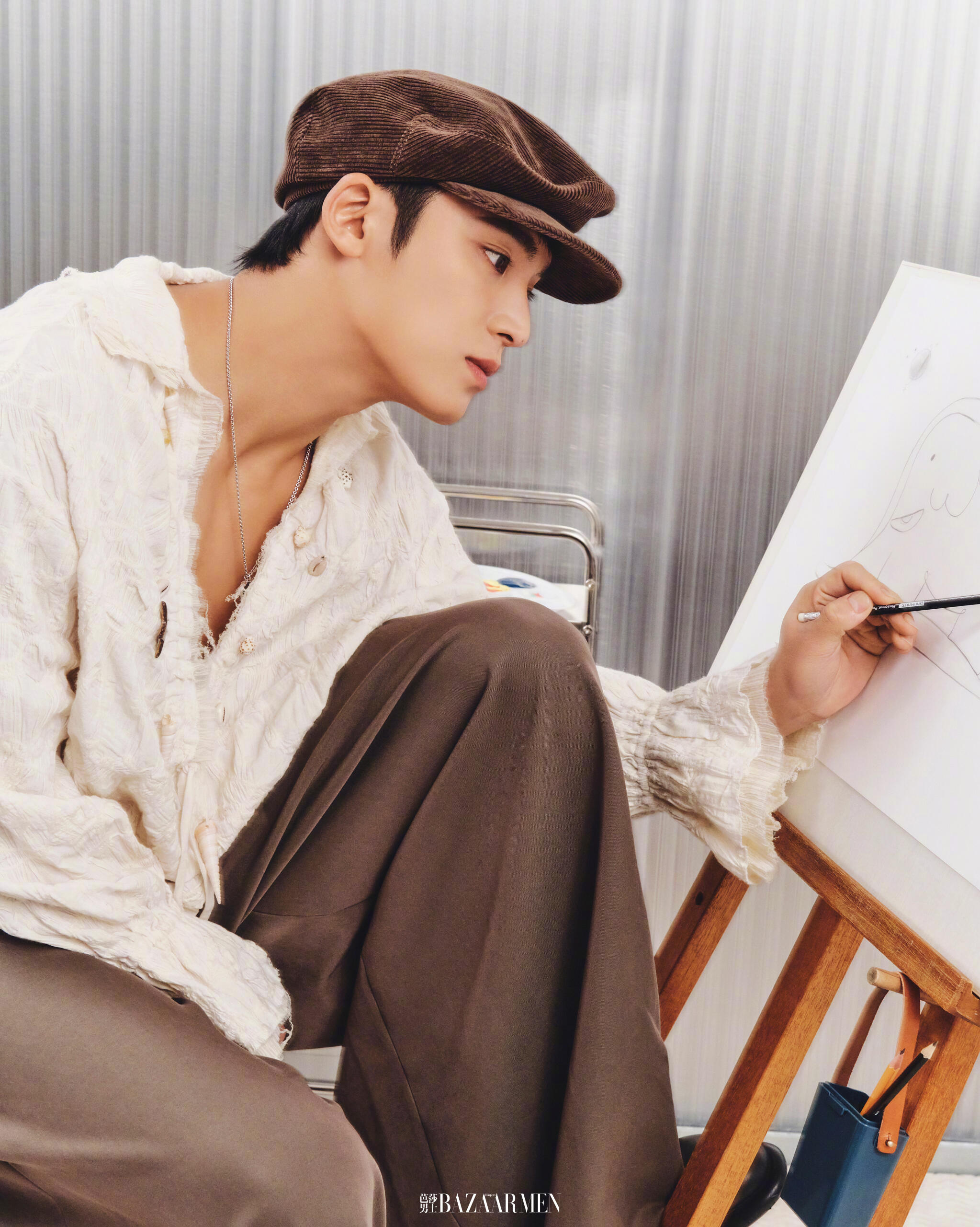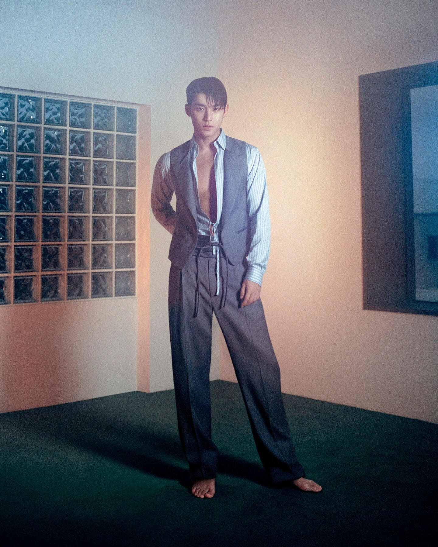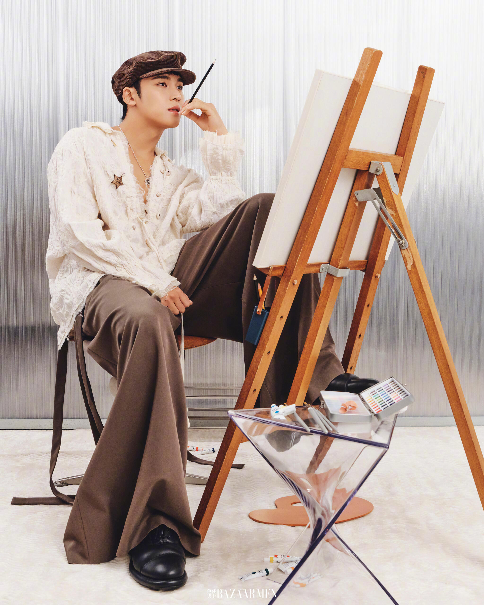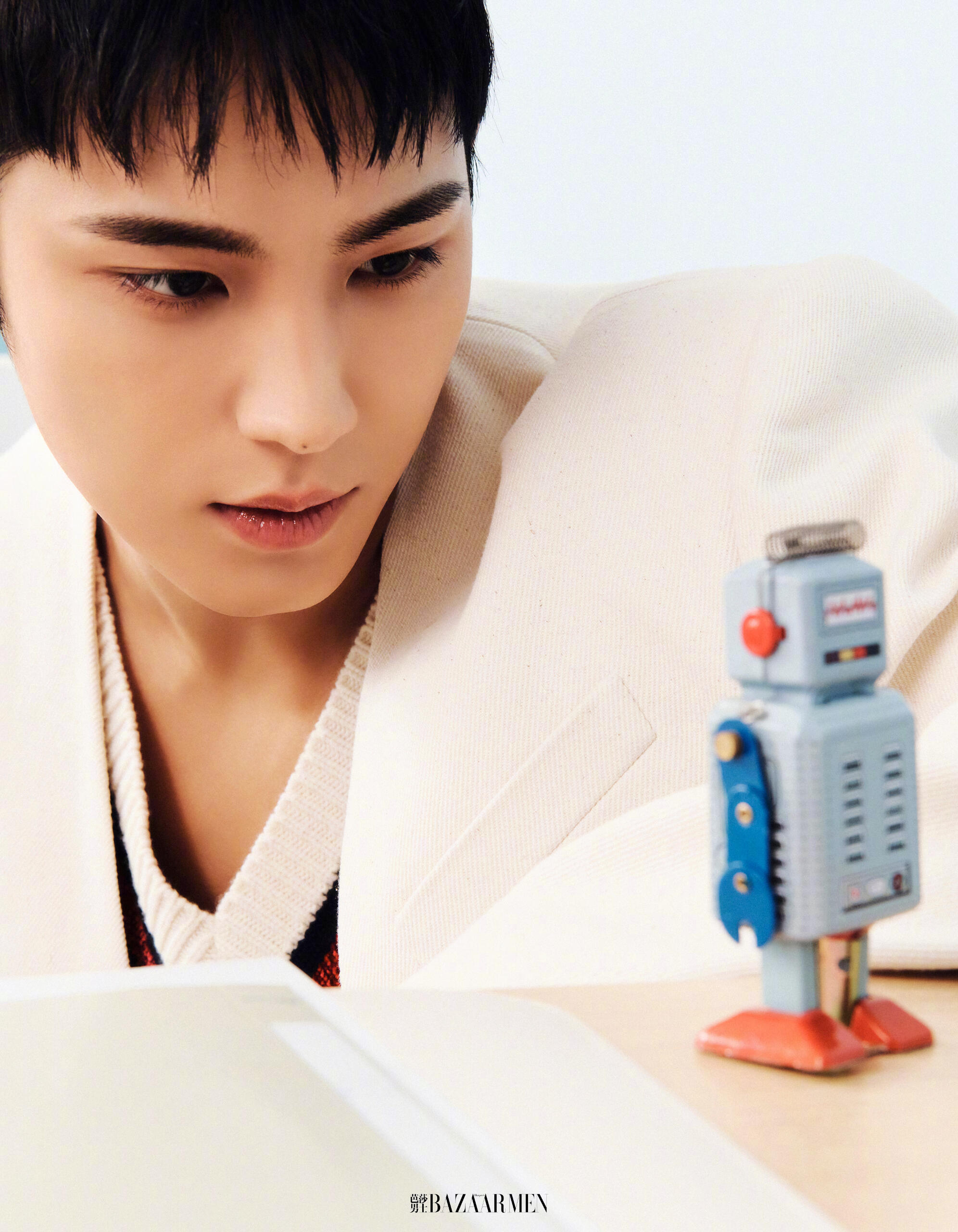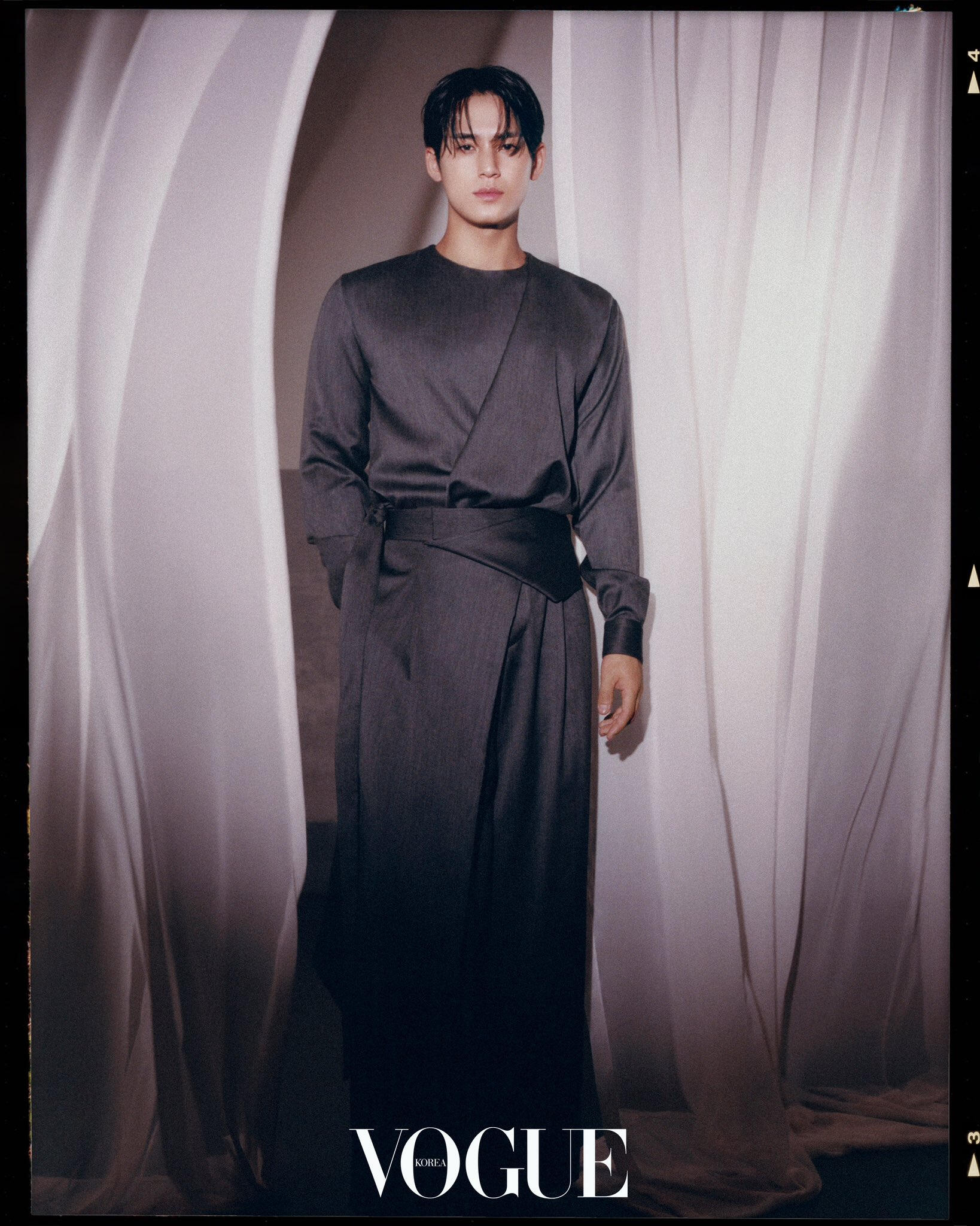 I’m today’s model– Mingyu of SEVENTEEN, I don’t think [of myself] as Mingyu, the main character. Every person in this shoot is doing their best in their respective positions. We work together to achieve one goal. After all, it’s nice to work enjoyably, and it’s a good thing if I am the person who is creating that kind of [enjoyable work] environment. Since I was younger, I think I’ve just grown accustomed to liking people. (laughs)It’s fascinating that I can't see a single wrinkle on you. You look bright and healthy.