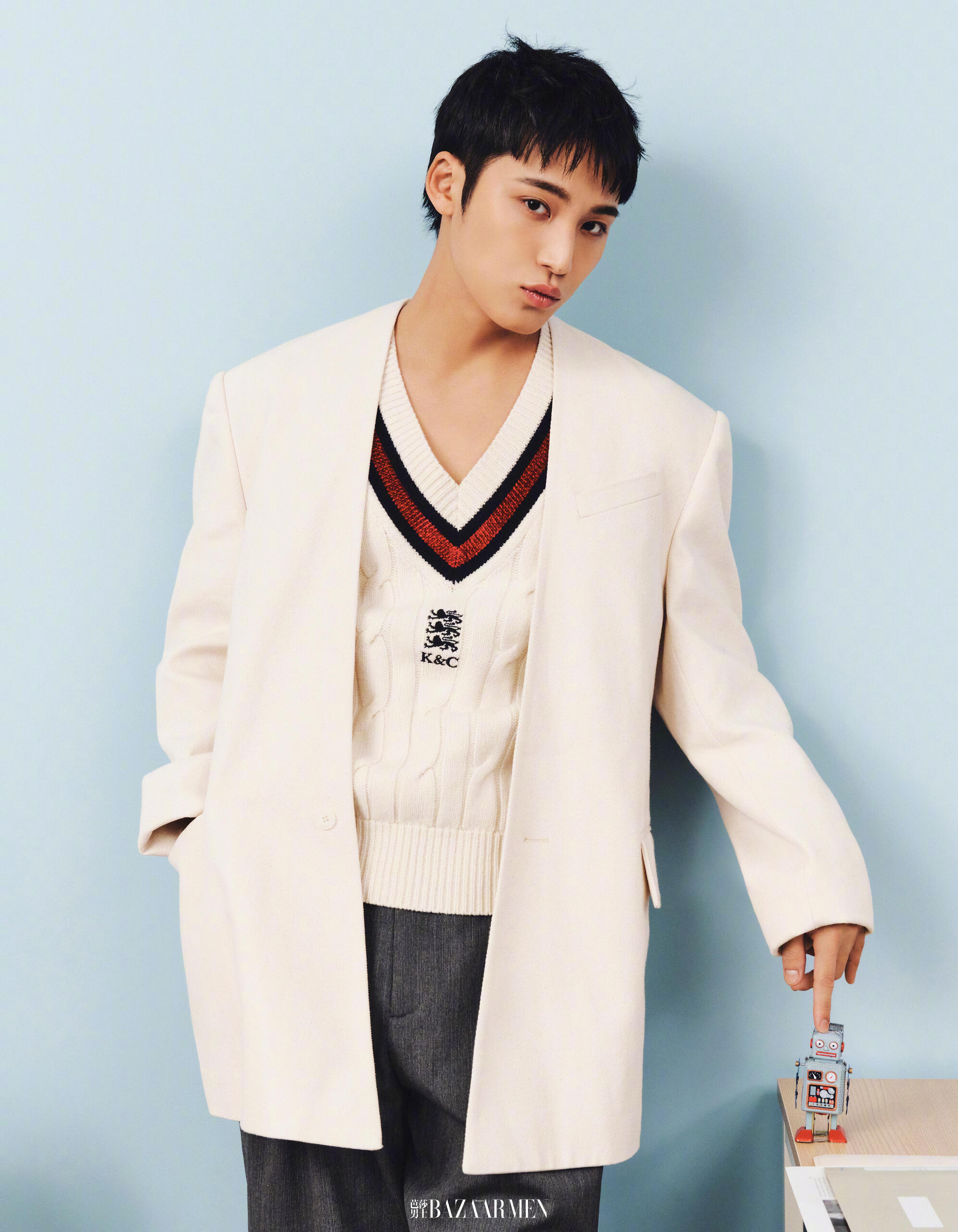 I wasn’t able to listen to a single song today. Last night, I listened to Girl by Lee Moonsae. [I heard the song] by chance when I was together with my mom and dad in the car. It was the most recent song that I heard.After two encounters in 2017 and 2019, today’s shoot is your third encounter with the readers of DAZED. Based on your personal view, please tell us how Mingyu has changed.