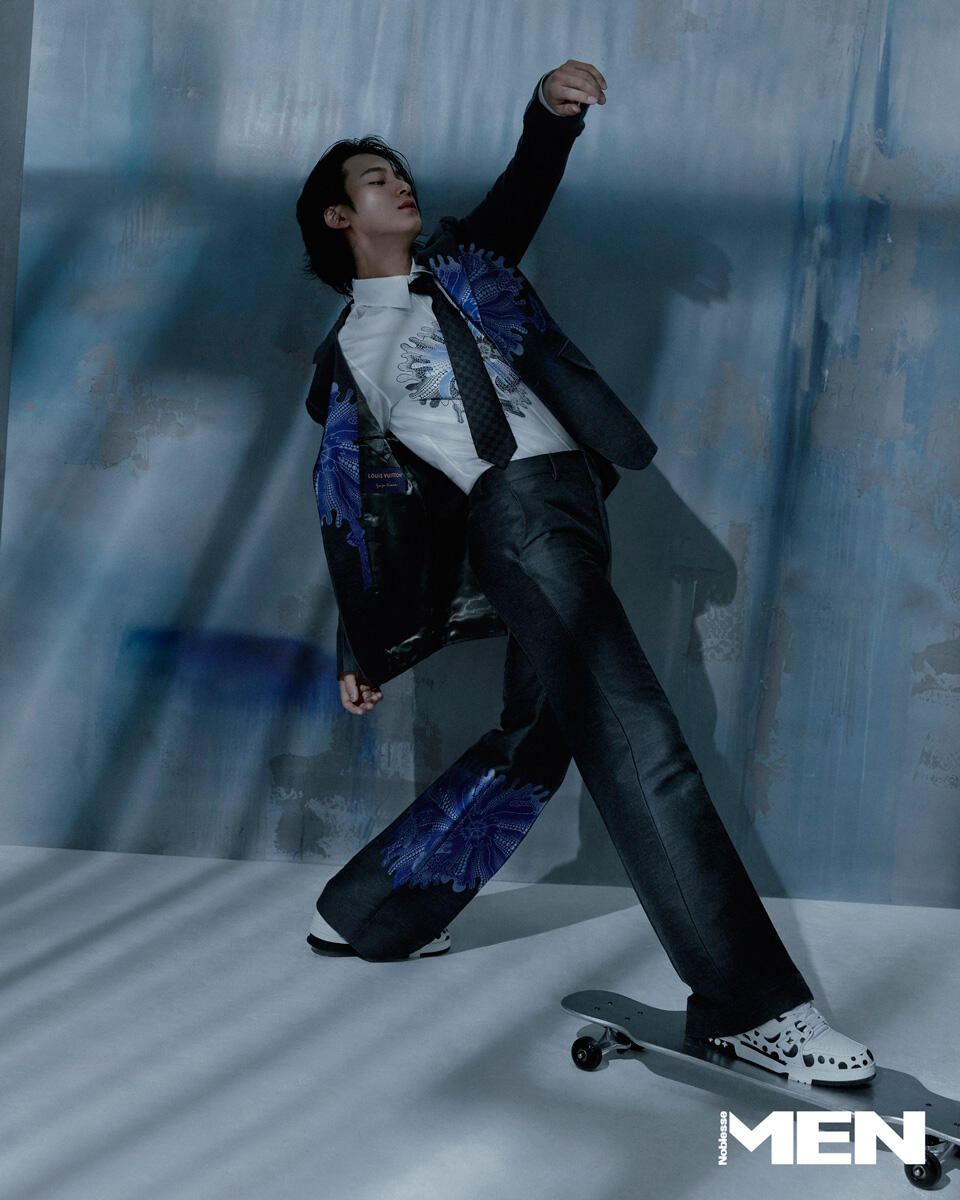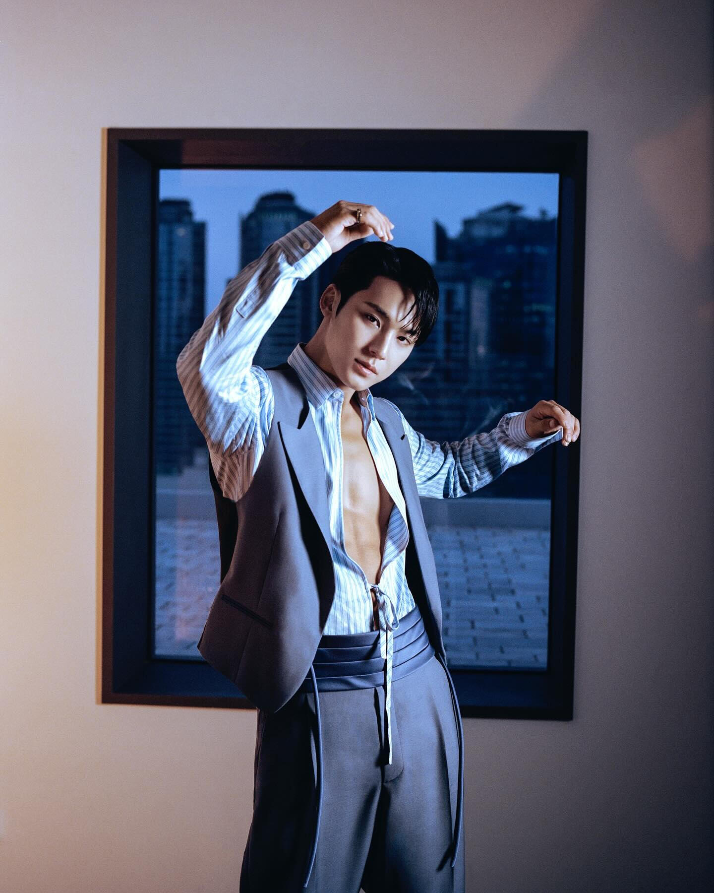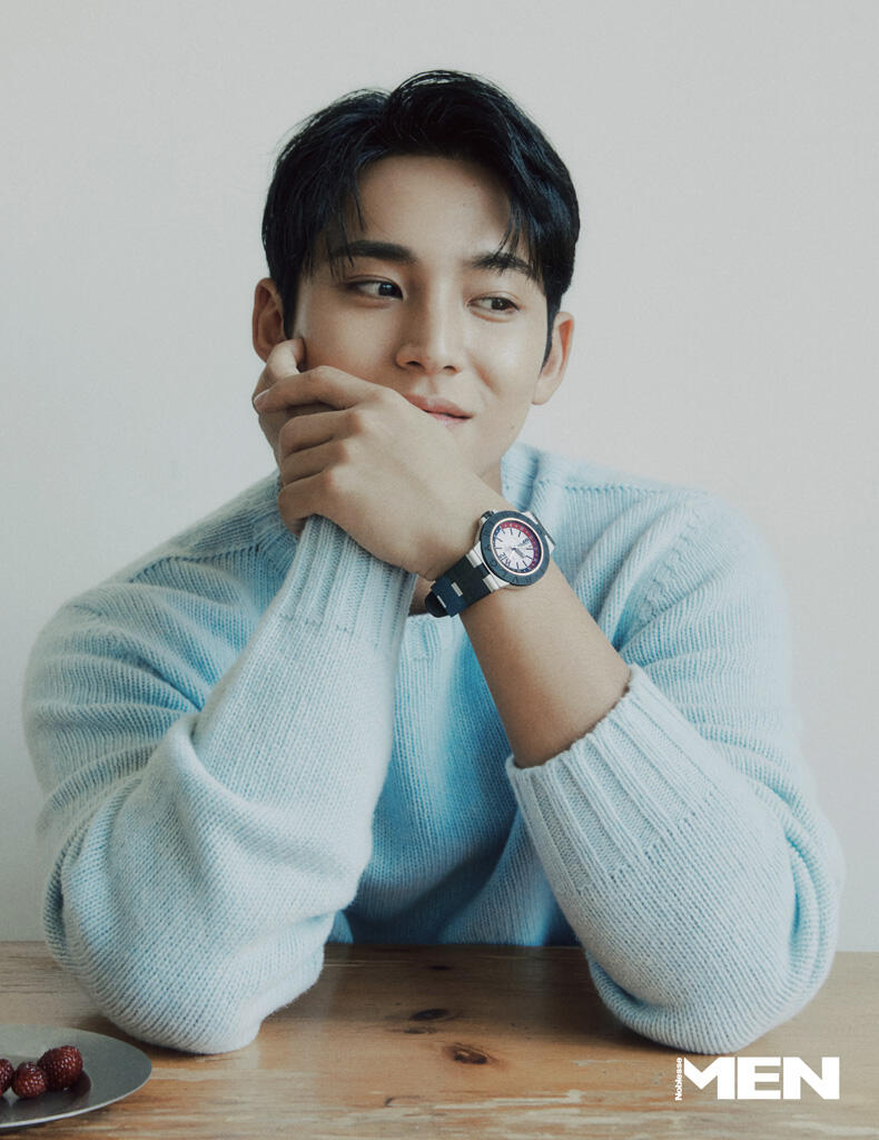 I think that doesn’t happen very often [to me]. Except when I’m inside a car moving from one place to another or when I’m waiting during a schedule. If I have some of my own time, I try to move as much as I can. I don’t want to waste my time.After about a year or so, we met again with Men Noblesse. We [the staff] also talk about that moment sometimes among ourselves. How MINGYU was wonderful as a model, but how MINGYU’s passion and bright energy was very likable. For nearly 10 years, it’s not easy to work at the same consistent energy, but are you as passionate as ever?