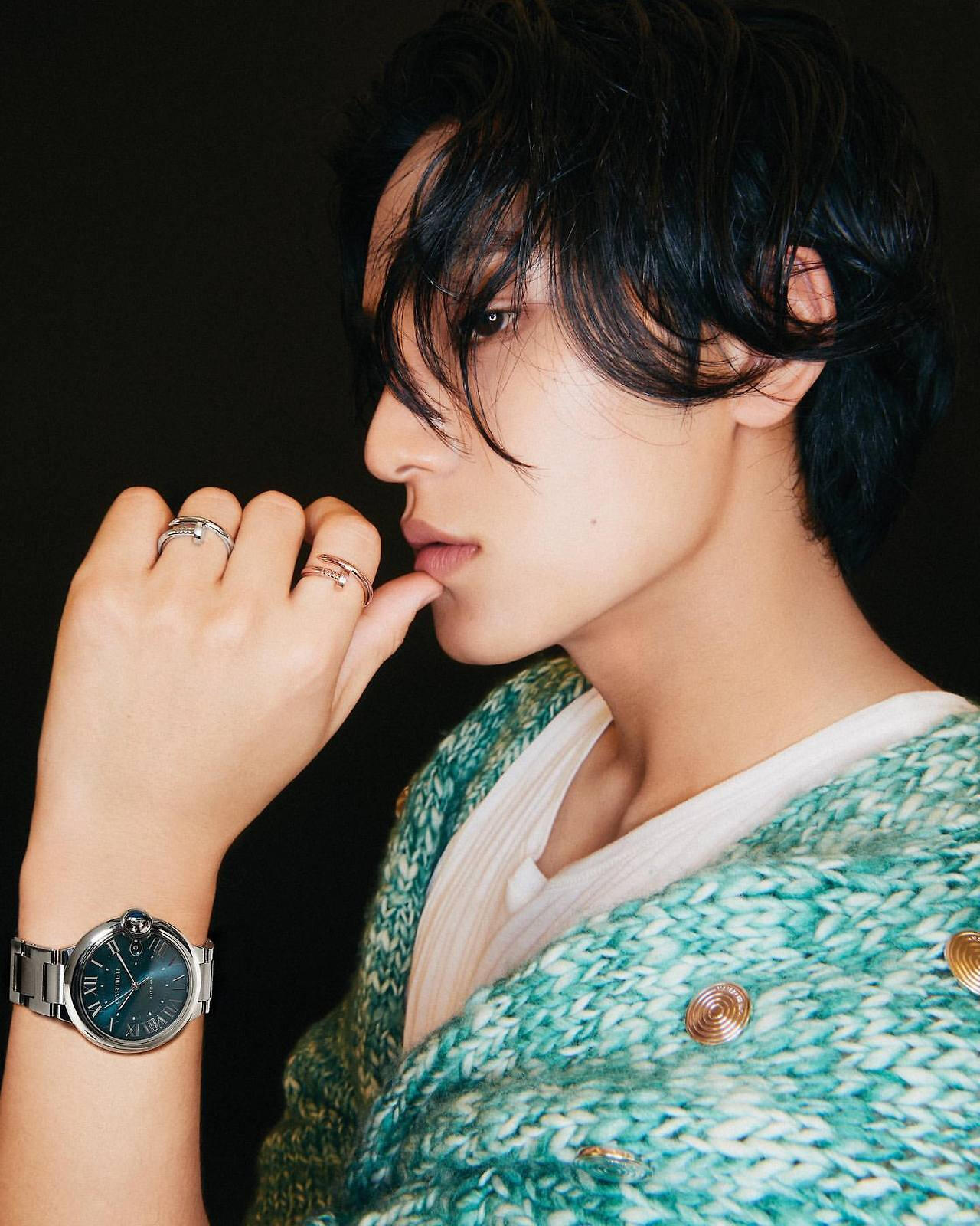 I’ve always liked Cartier. The first birthday present I bought for myself around 2019 was Cartier’s LOVE bracelet, and Hoshi hyung gifted me a rose gold ring with the same pattern [as the bracelet]. But 2 years ago, when I was working on a schedule, I lost both of them. It was such a great pity, but I feel great being able to meet [Cartier] in such a way again.Watches can be likened to many things, [like how] it’s meant to symbolize time. I’m unsure of how the year was [for you], but if you were to liken it to a time of day, what would it be–the morning, evening, midnight, or dawn?