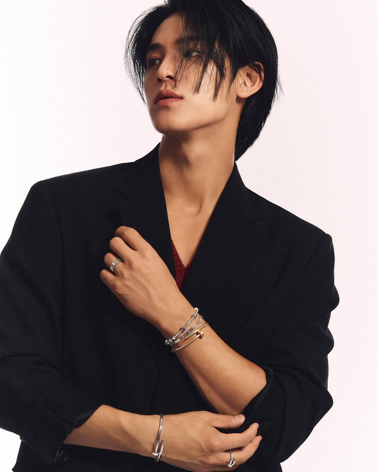 At that time, I think I wanted something exciting. Like a new experience. Now, I think I can be satisfied with the day that serenely passes. I hope you have a comfortable/peaceful day– not too fancy or too lonely.You attended the Cartier Maison Cheongdam opening party, and many said that you wearing the red suit was a perfect match with Cartier. What did you think of the compatibility of Mingyu and Cartier [for today’s shoot], which is [meant to] represent the holidays?